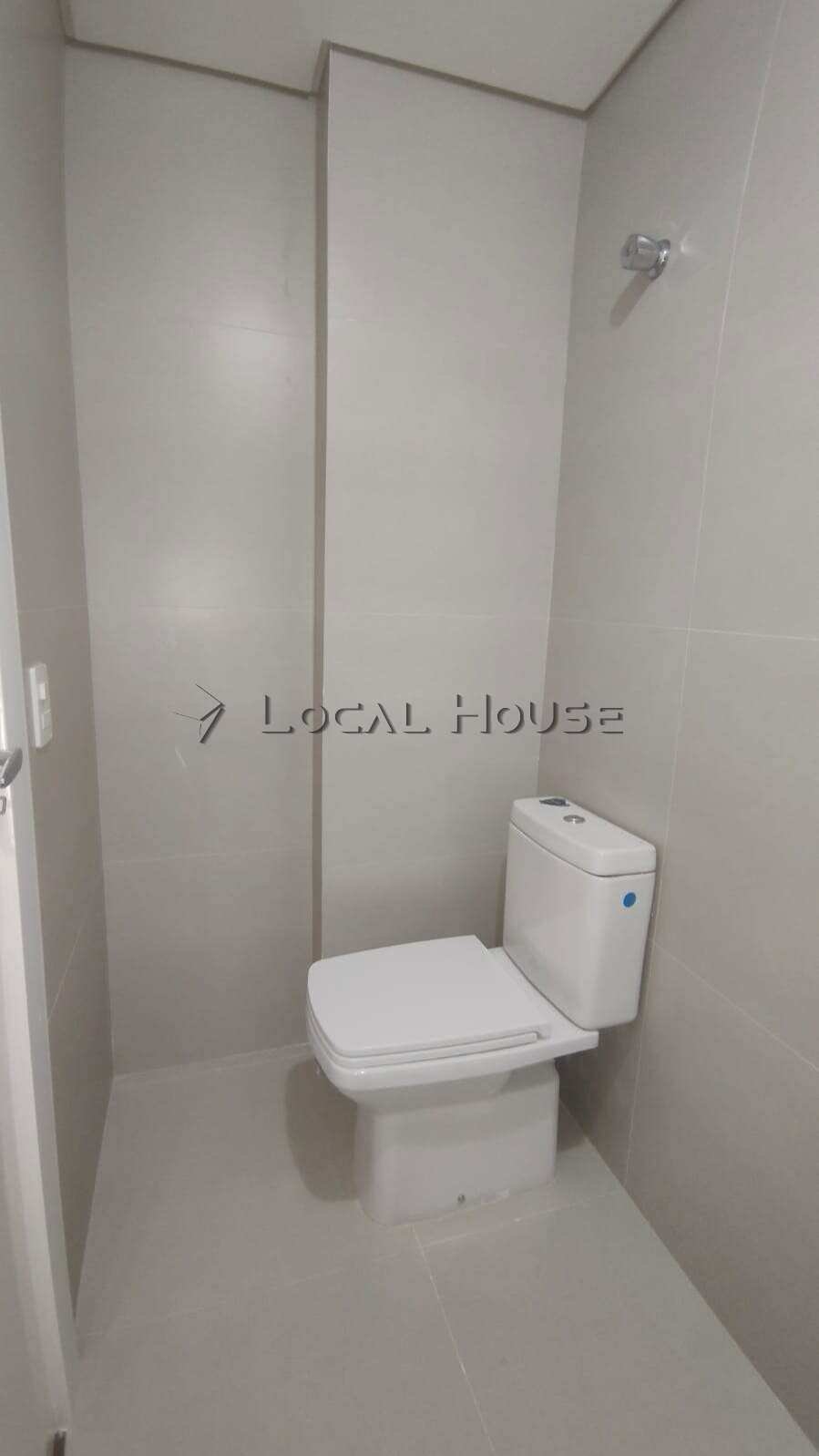 Banheiro moderno com nicho no box, vidro temperado e louças novas (Deca)