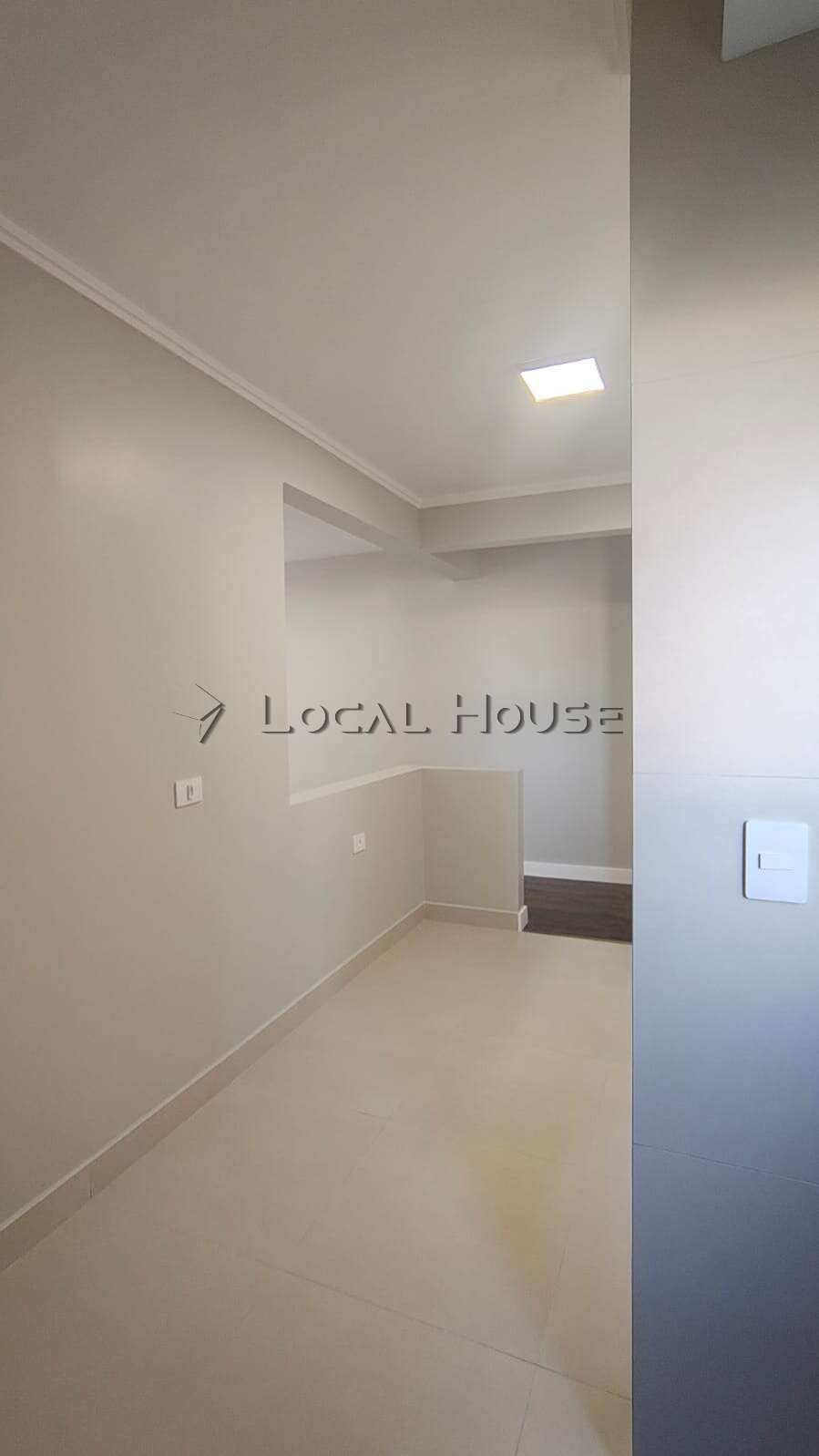 Cozinha e lavanderia com sanca de gesso, piso e paredes em porcelanato